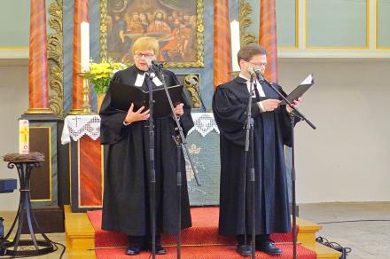 Pastorin Prof. Dr. Ursula Rudnick und Pastor Dirk Heuer fanden in der vollbesetzten Kirche klare Worte gegen Hass und Gleichgültigkeit – und riefen zu Haltung und Mut auf.