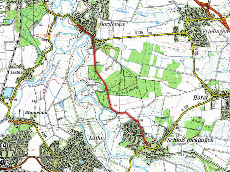 Von der Kirche in Schloß Ricklingen mit dem gegenüber liegenden Amtsmannshof der Voigtstraße bis zu ihrem Ende auf einem Wanderparkplatz folgen. Die Straße setzt sich mit einem wunderschönen Waldweg entlang des Leine-Steilufers fort. Man trifft auf die historische Ziegelei, in der noch immer Ziegel nach alten Vorbildern gebrannt werden. In Bordenau der Hauptstraße halblinks folgen, bis auf der rechten Seite etwas versteckt die Kirche auftaucht.