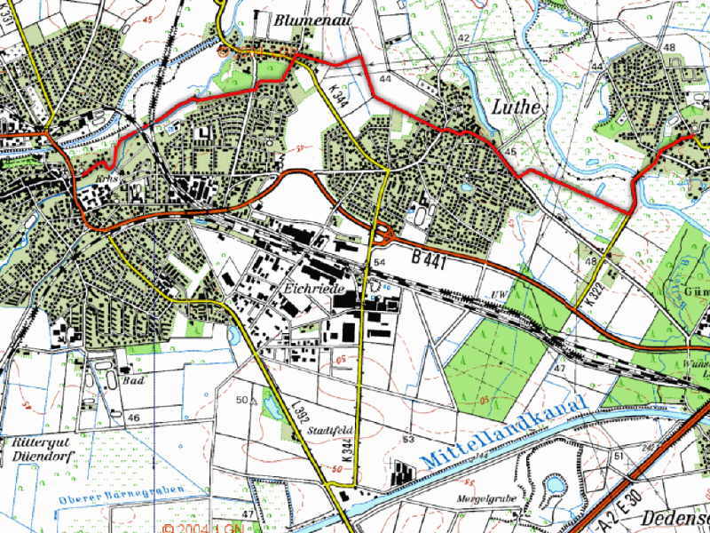 Von der Stiftskirche Wunstorf der Stiftsstraße nach Osten folgen. Am Gedenkstein für Agnes Miegel halblinks weitergehen. Dem Weg unter der Bahn hindurch und an der Südaue (hier brüten regelmäßig Eisvögel) entlang folgen. Über die Fußgängerbrücke und weiter dem Weg folgen bis zur Straße, diese überqueren und halblinks auf das Blumenauer Wäldchen zu. Um das Wäldchen herum, die Durch-gangsstraße überqueren und dann den Dammfeldweg nach rechts auf die Felder gehen. An der T-Kreuzung rechts, dann links und gerade auf den Ort zu bis zur Hauptstraße. (Wer im Rechtsknick nach links abbiegt, kommt zur Luther Kirche unter dem regelmäßig bewohnten Storchennest. Der Haupt-straße aus dem Ort heraus folgen und in den zweiten nach links abgehenden Feldweg einbiegen. Die-ser führt nach einem Rechtsknick an die Straße. Dieser muss man auf dem Radweg nach links folgen, um die Leine überqueren zu können. In Schloß Ricklingen der Hauptstraße folgen bis links die rote Kirche auftaucht. Die Kirche überrascht durch ihre in Norddeutschland ungewöhnliche barocke Innenausstattung.