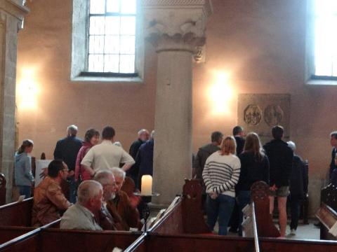 Nach dem Gottesdienst schauten sich die Menschen das Brot-Dreirad an, mit dem auf das anhaltende Engagement von „Brot für die Welt“ für die Hilfe für Menschen in Hungersnot und mehr Gerechtigkeit hingewiesen wird. Das Team aus Hannover tourt vom 25. Juni bis 23. August durch die 48 Kirchenkreise der Landeskirche Hannovers. Uwe Becker, Beauftragter der Landeskirche Hannovers für „Brot für die Welt“ erzählte, dass sie bisher „viel Unterstützung auf ihrer Tour bekommen haben“ und „die Menschen sich über die Aktion mit der Ape freuen“.