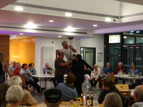 Unter der Überschrift: "Frage deinen Superintendenten" war Gelegenheit, viel über den Neuen im Kirchenkreis zu erfahren: Reiner Müller-Jödicke beantwortete offen viele Fragen, die aus dem Publikum gestellt wurden und wanderte von Tisch zu Tisch, um möglichst viele der Anwesenden kennen zu lernen.