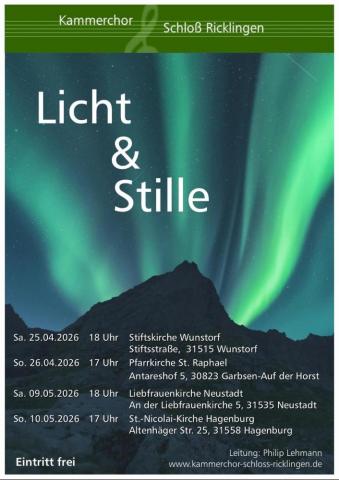 Start- und Enddatum Sa., 25.04.2026 - 18:00 Kategorie Kirchenmusik Veranstalter Wunstorf Stift Veranstaltungsort Große Karte anzeigen Stiftskirche, Stiftsstr. 5b, 31515 Wunstorf Raum Stiftskirche Link https://kammerchor-schloss-ricklingen.de/ Enddatum Fr., 24.04.2026 - 18:00