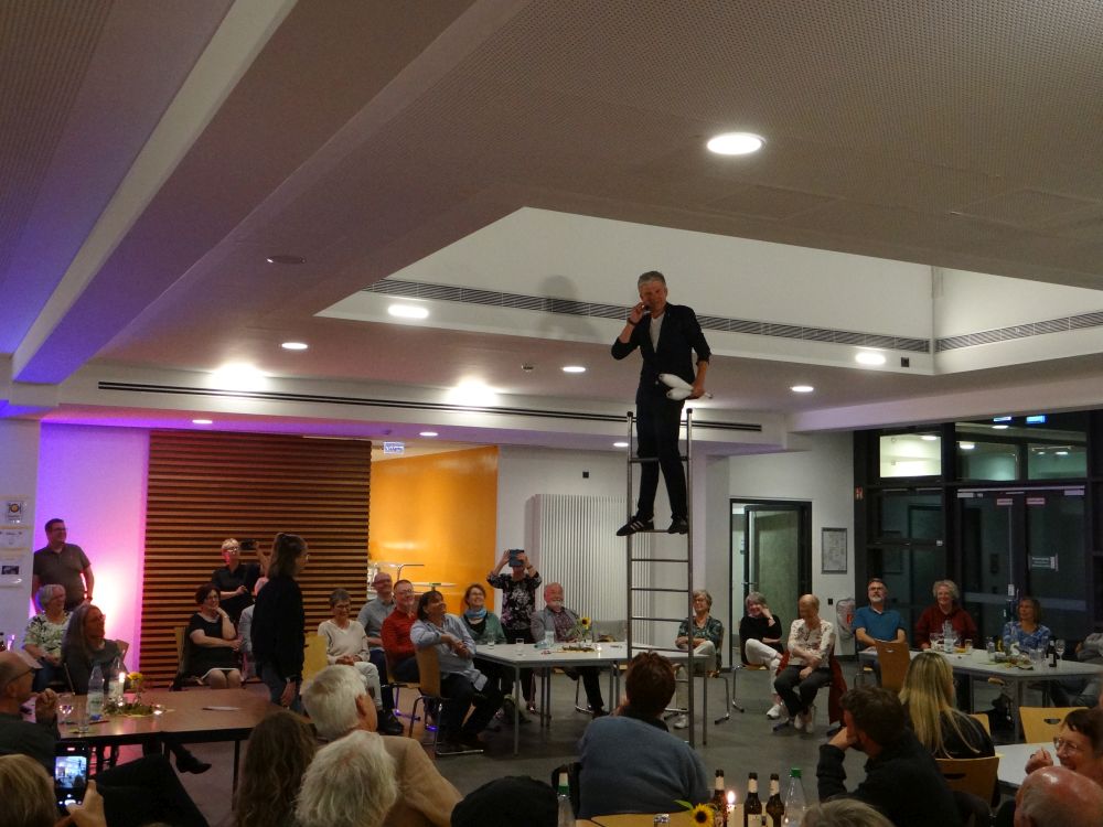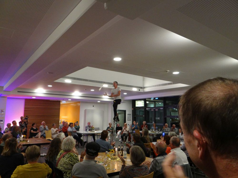 Mit dem akrobatischen Künstler Jan Ole aus Hamburg gab es viel zu lachen, bevor dann alle zu einer Abschlussandacht unter klarem Sternenhimel ums Lagerfeuer standen und mit Bläserbegleitung "Der Mond ist aufgegangen" sangen.