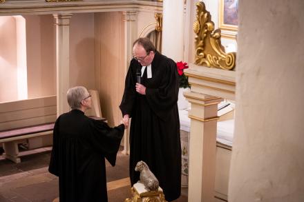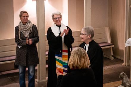 Zum Segen traten langjährige Weggefährtinnen aus Kita-Arbeit, Diakonie und Pfarrdienst nach vorn. Die Segenshandlung bildete einen ruhigen Abschluss und machte noch einmal sichtbar, wie stark Weidners Arbeit in Beziehungen verankert war.