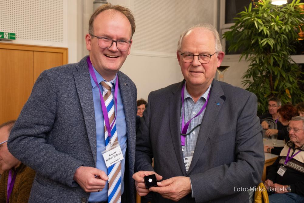 Zum Abschluss der Synode hat Superintendent Rainer Müller-Jödicke langjährig ehrenamtlich Engagierten für ihre herausragende Arbeit im Kirchenkreis gedankt. Besonders hervorgehoben wurden dabei Fred Norra und Holger Butenschön. Ersterer leitete die Synode, Zweiter war unter anderem ehrenamtliche Vertretung für Müller-Jödicke im Kirchenkreis-Vorstand. Beide haben darüber hinaus über viele Jahre hinweg den Kirchenkreis und seine Gemeinden mit ihrer Zeit, ihrem Wissen und ihrer Tatkraft unterstützt. In einer kleinen Zeremonie hat der Superintendent entsprechend wertschätzende Präsente überreicht. „Ohne den unermüdlichen Einsatz der Ehrenamtlichen wäre unsere Arbeit nicht denkbar. Sie sind das Herz und die Seele unserer Gemeinden, und wir sind dankbar für jedes Engagement“, betonte er in seiner Dankesrede.